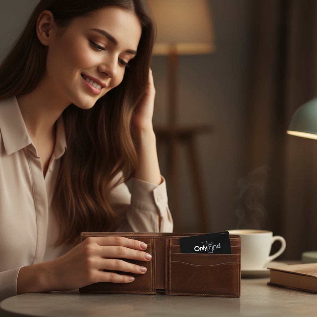 Découvrez notre Carte de localisation pour Portefeuille, conçue pour vous aider à garder un œil sur vos objets essentiels tels que votre passeport, vos étiquettes de bagages, votre portefeuille et bien plus encore. Grâce à sa compatibilité avec l'application Localiser d'Apple ou Find my Device sur Android, localisez vos affaires en toute simplicité.