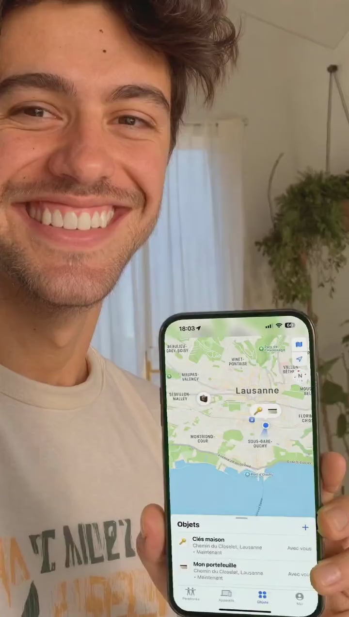 Grâce à sa compatibilité avec l'application Localiser d'Apple ou Find my Device sur Android, localisez vos affaires en toute simplicité.